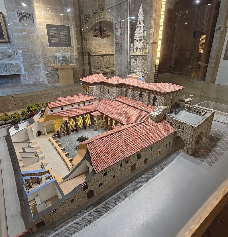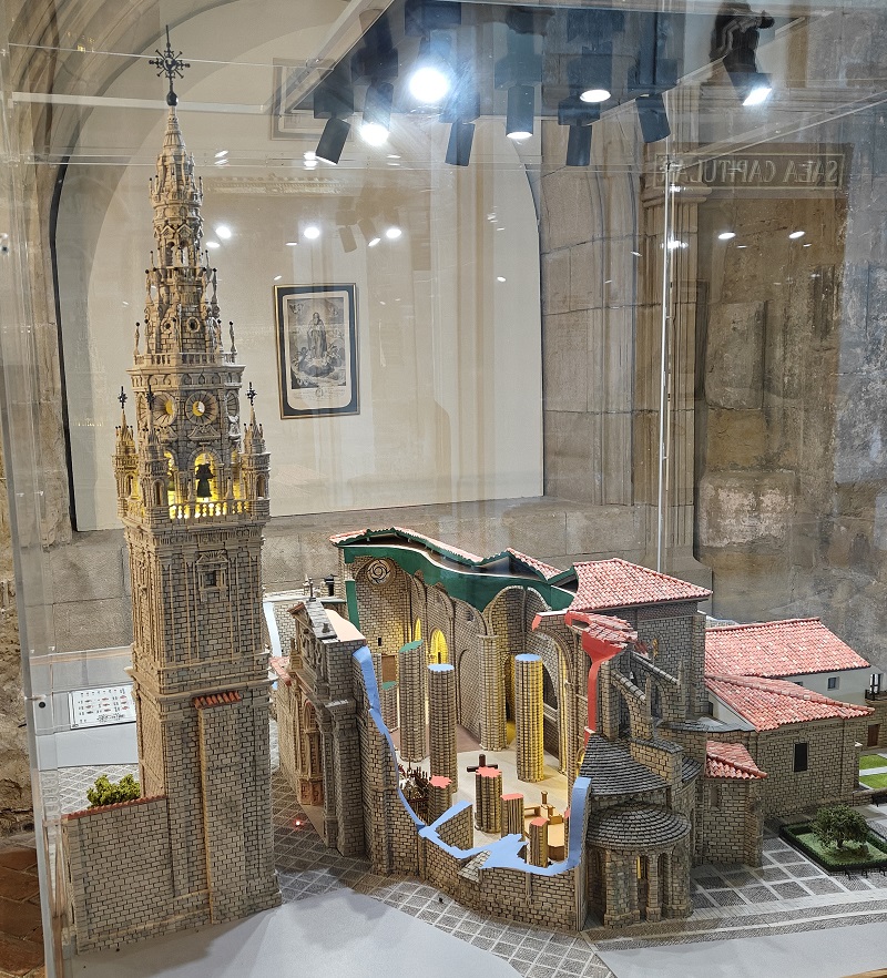 This article is another special, focusing attention on just one fine example. A cut-away 1/50 scale model of the cathedral at Santo Domingo de la Calzada in northern Spain - on display inside the cathedral itself. Which I visited in September 2025. Like so any models in public buidings it is displayed within a glass or pastic case which often makes my amateur photography rather difficult - so please excuse the quality of some of the images. It was made in March 2023 but I coud not see a credit of the maker.
