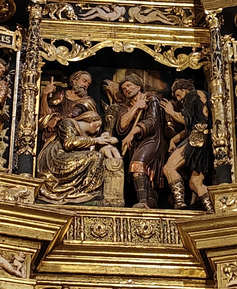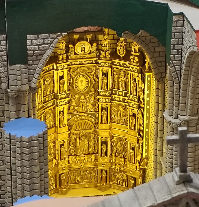 The same is true of the building itself. Inside there are lots of interesting details - with the highlight being a spectacular gilded retable from 1538. Which the modeller has made a serious attempt at reproducing: