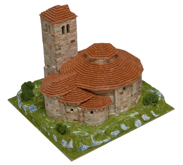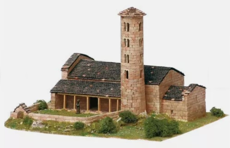 The next model, scale 1/150, illustrated is very different. It is of the Church of Santa Coloma in Andorra la Vella, made by Spanish company Aedes Ars. It is sold as a kit of approximately 3,400 pieces including glue, cardboard bases on which to glue the bricks, all the decorations illustrated in the photos, ceramic bricks and assembly instructions.