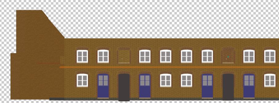 I'm currently working on a terrace houses file to turn into a card model but my printer isn't working and I'm tired of pixel editing in Photoshop. It's too regular and I'm trying to create templates for alternative windows. It's a slow old job.