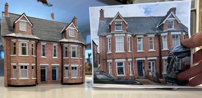 Three years after I wrote this piece I started a Facebook discussion about how to stick window flaps down. Which I will try to capture in a techniques article, as Facebook is such a transitory medium. In the course of that disussion the next image popped up - the work of Luke Dolman. Although not from the same town as me his work captures perfectly the style of buildings shown above, and of the prototype in his photo.