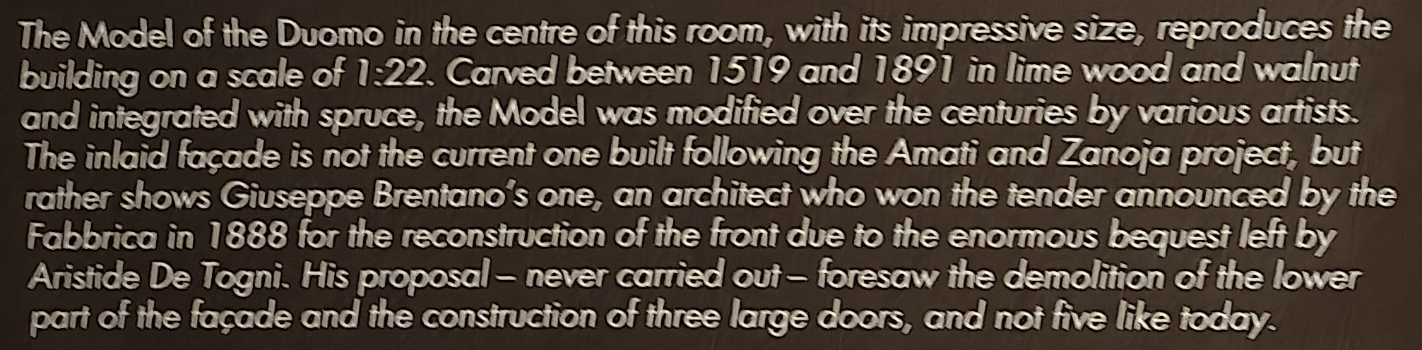 Dominating the room is an amazing giant model of the Duomo. We visited it in February 2026 as part of our Spring tour.