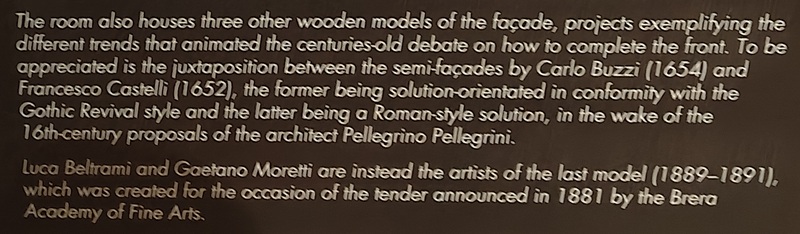 Within the model room there were also other models of the facade. The museum has preseved the surviving architectural models "used over the centuries as fundamental work tools to evaluate the design choices under consideration by the architects in charge of the cathedral".