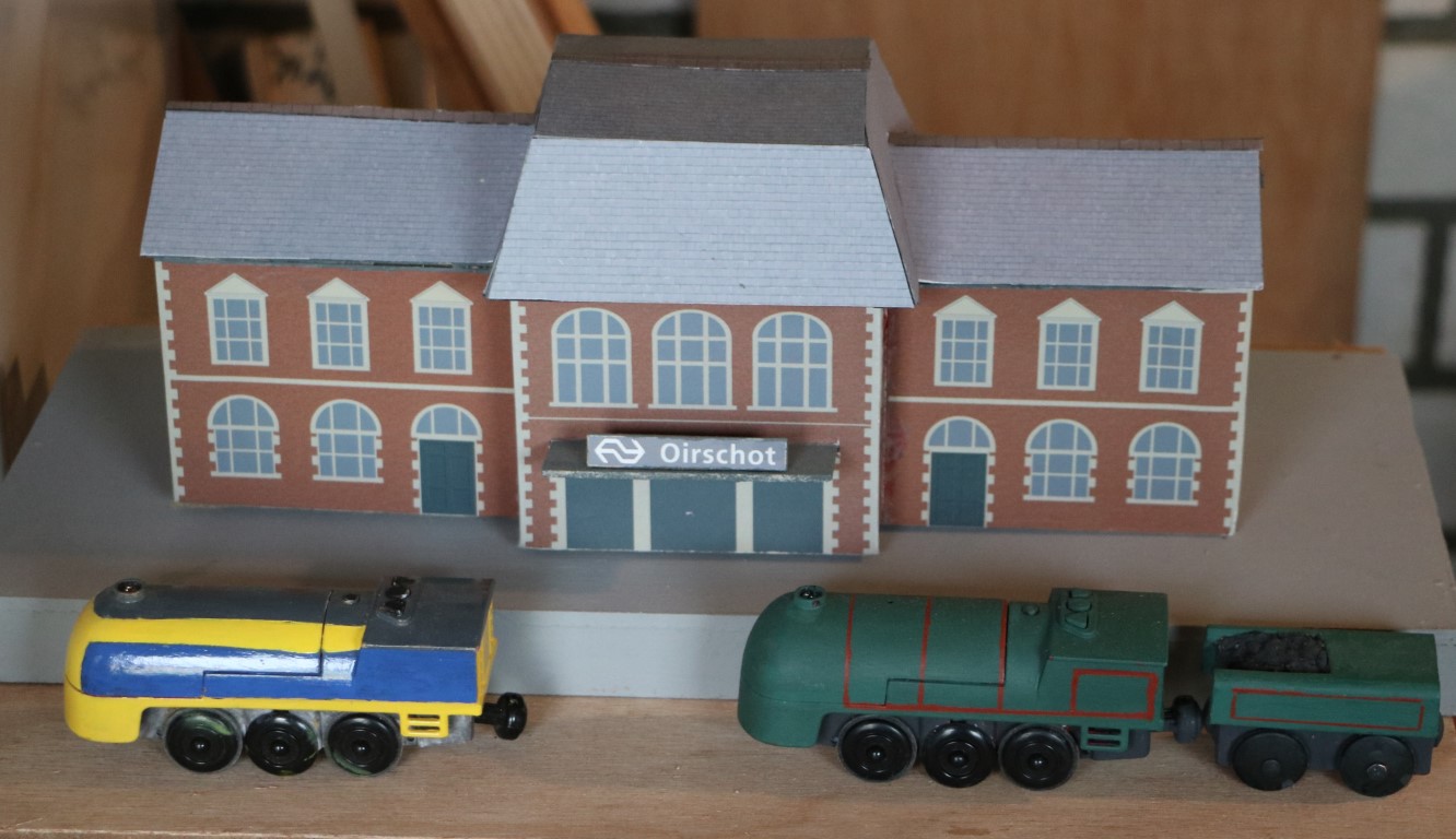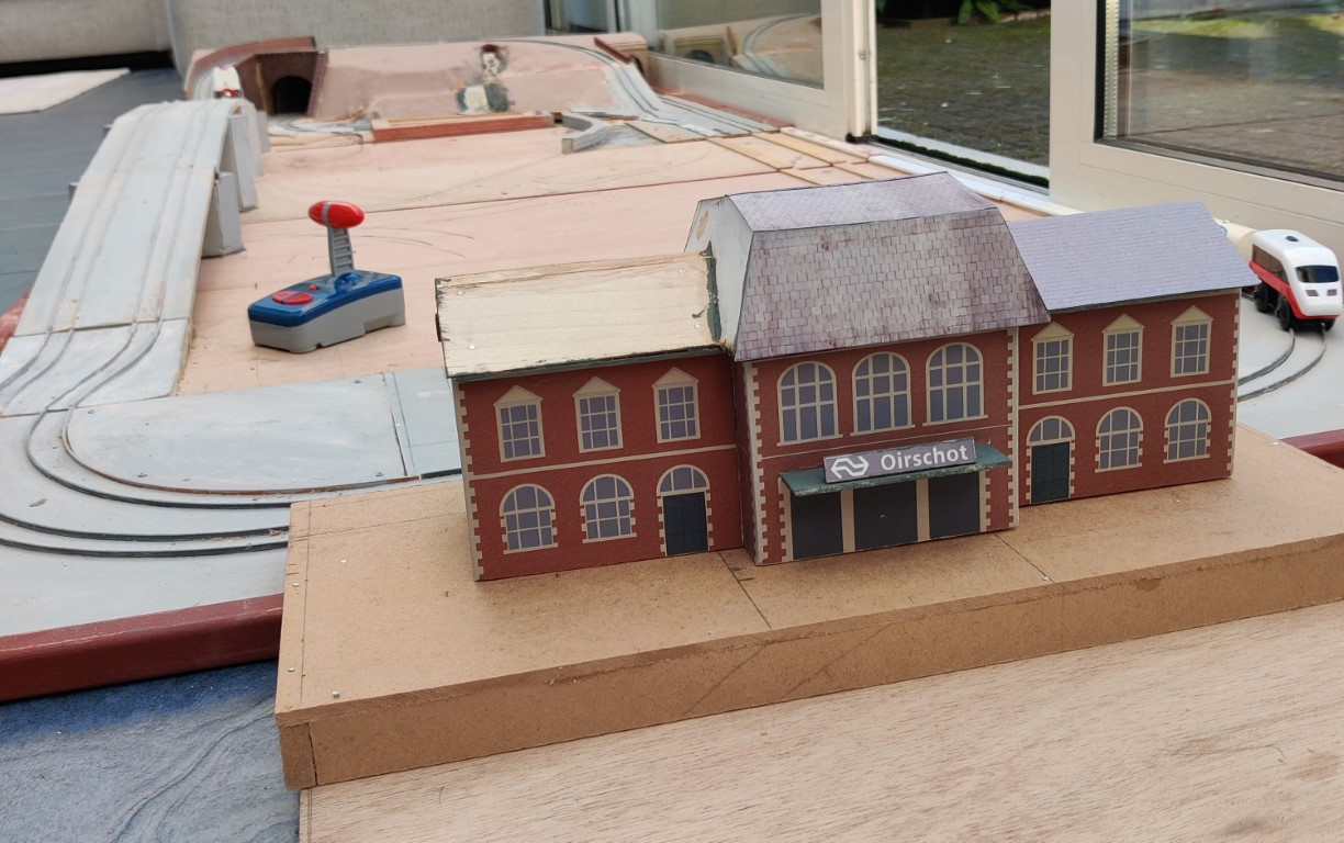 Oirschot, an attractive small town in the North Brabant province of the Netherlands, does not actually have a railway station. I don't believe it ever did. It is the central town in the district, 'gemeente', where I now live. Oirschot station is simply a toy created by me for the grandchildren.