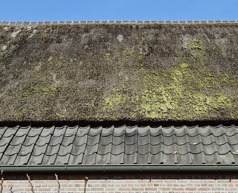 I was out for a walk this morning in the spring sunshine and saw this example of some old and rather rough thatch. On a North Brabant farmhouse, in the Netherlands. Even such old and battered thatch is smoother and much less textured than many modellers try to make it. There is a temptation to try and reproduce the thatching process rather than just trying to model the appearance of the finished item.