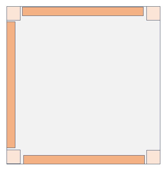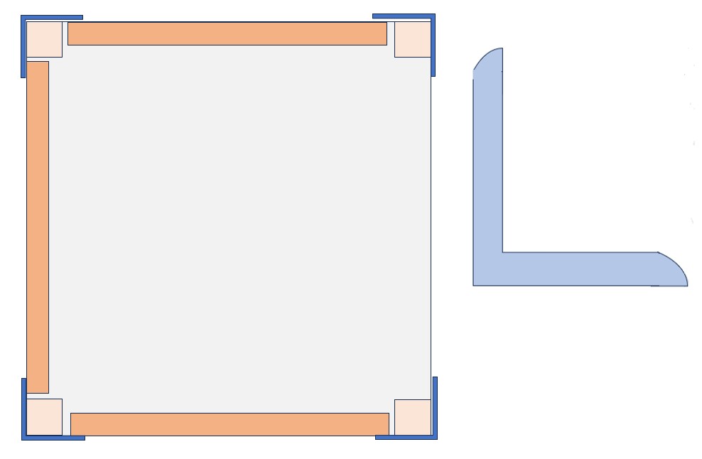 The dimensions of the components are all interlinked. The key is the internal measurement of the L sections. This needs to be wider than the square pillars which in turn need to be wider than the height of the panel edging. The L sections I used are 44 mm with an internal dimension of 38 mm. My columns are 28 mm square, giving an overhang of 10mm. My panel edging is xx mm. If I was starting again I would choose to have wider L sections and wider columns (maybe 60 and 50) but preserving the same sort of overhang - somewhere between 8 and 12mm. I might also make the two columns at the front of the box rectangular rather than square.