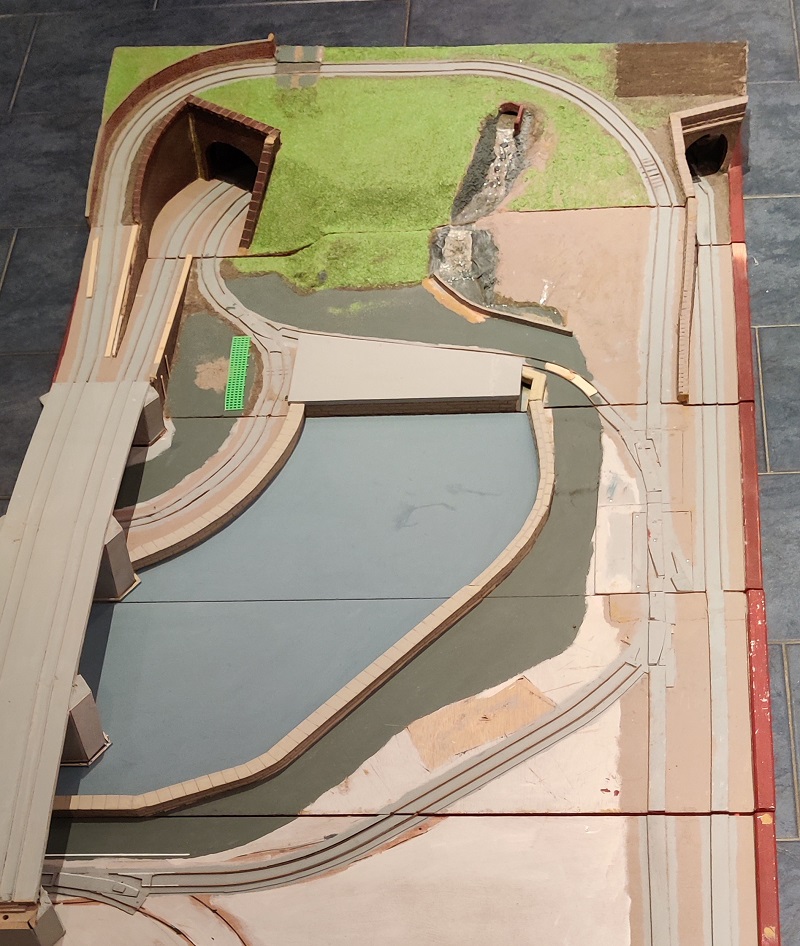 In My Train Board I describe how I am building a layout for Brio style trains. This article is about how it is constructed and in particular how it is designed to pack up into a box sufficiently neat to stand in the corner of the conservatory we use as a playroom when grandchildren come to visit.