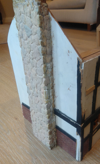 One of the big negatives is the framing on the front. I sort of made it up as I was going along and it just does not look right. I think it's not structually viable and the thin strips of board I used (balsa?) are just too regular. More stockbroker tudor than historic. If I ever have another go at such a building I need to base it on an authentic prototype - or at least draw more closely on real examples for inspiration.