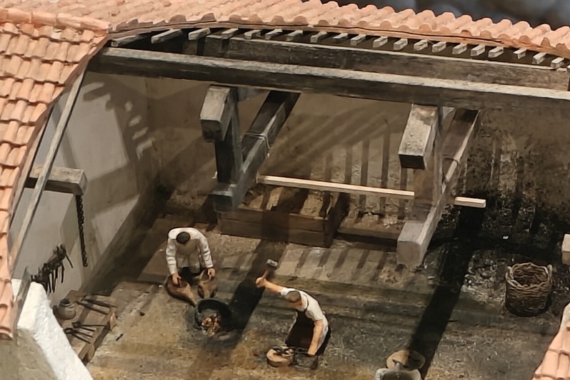 Next, one of a series of models depicting what it is believed Roman buildings would have looked like. This one is a reconstruction of a forge at the Claveysonnes site at Montélier just east of Valence from the 4th century AD.