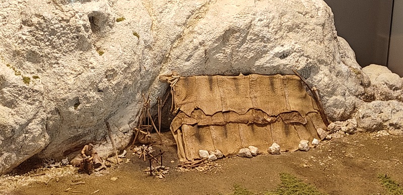 Taking conjecture to its limits, the next model is of a stone age ( or bronze age?) shelter - which might just about count as a building.